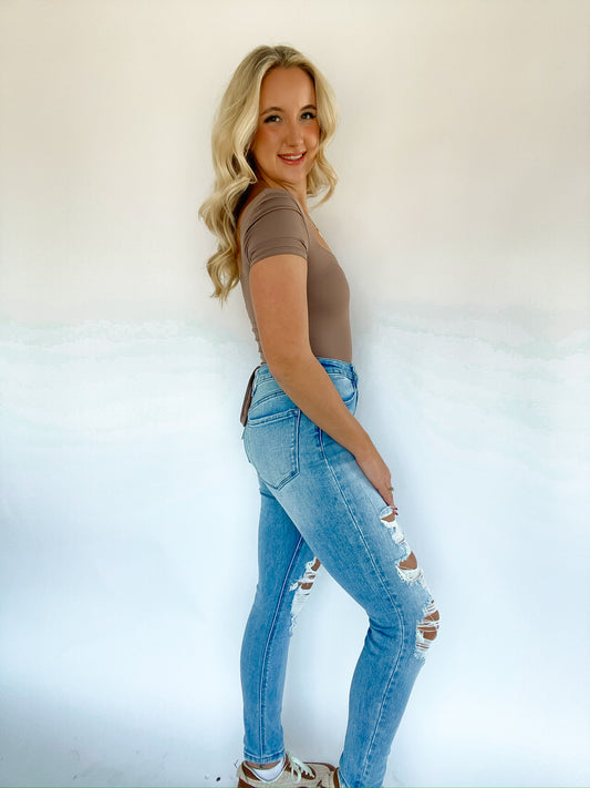 Kan Can High Rise Skinny Distressed Jeans (Medium Wash)
