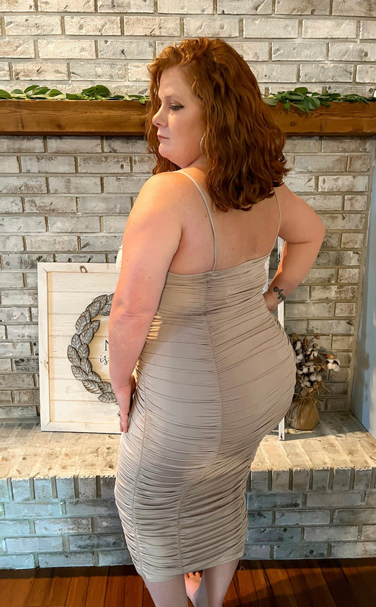 Smocked Puff Sleeve Tie Neck Detail Mini Dress- Plus