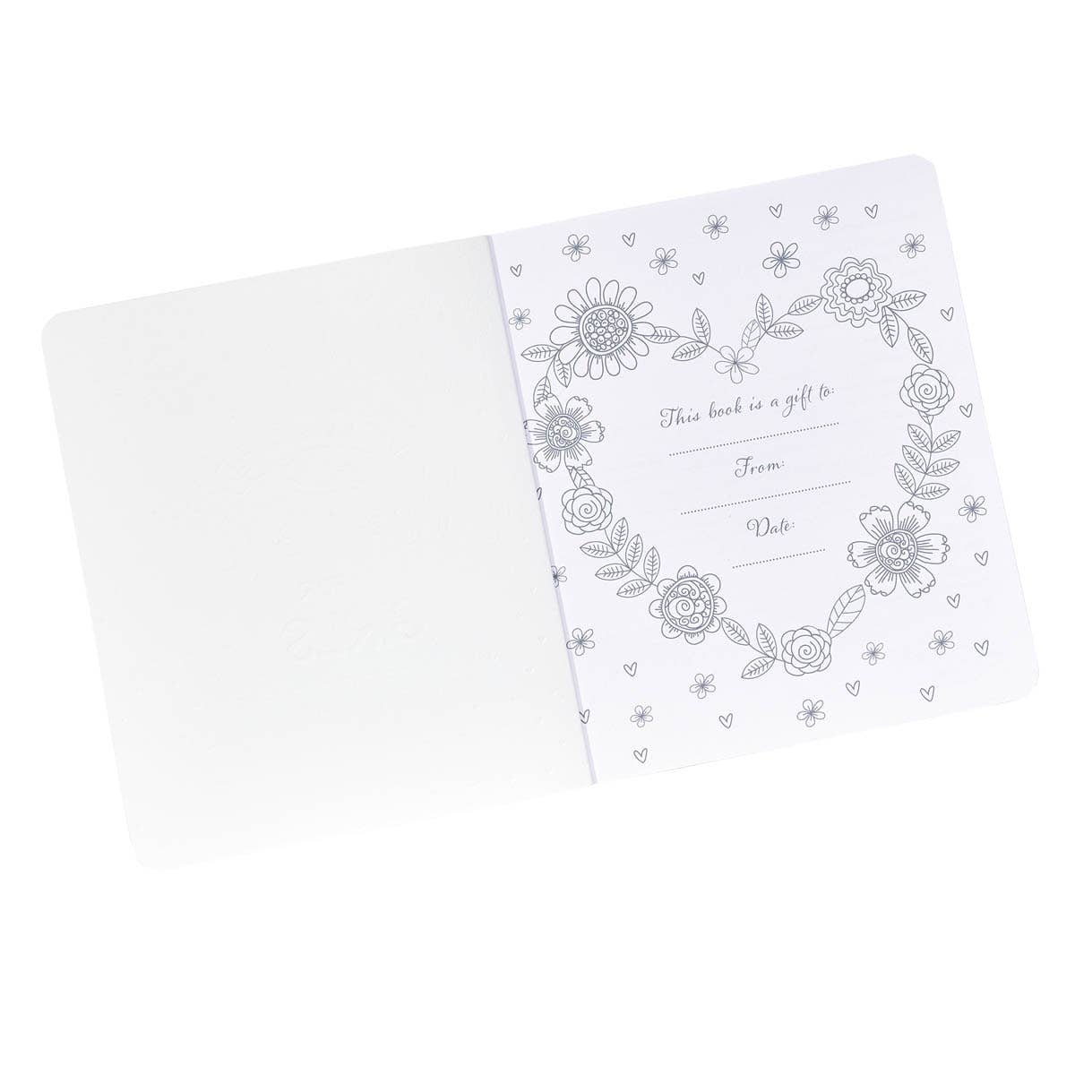 Pink cover with silver-foiled hearts and flowers,